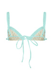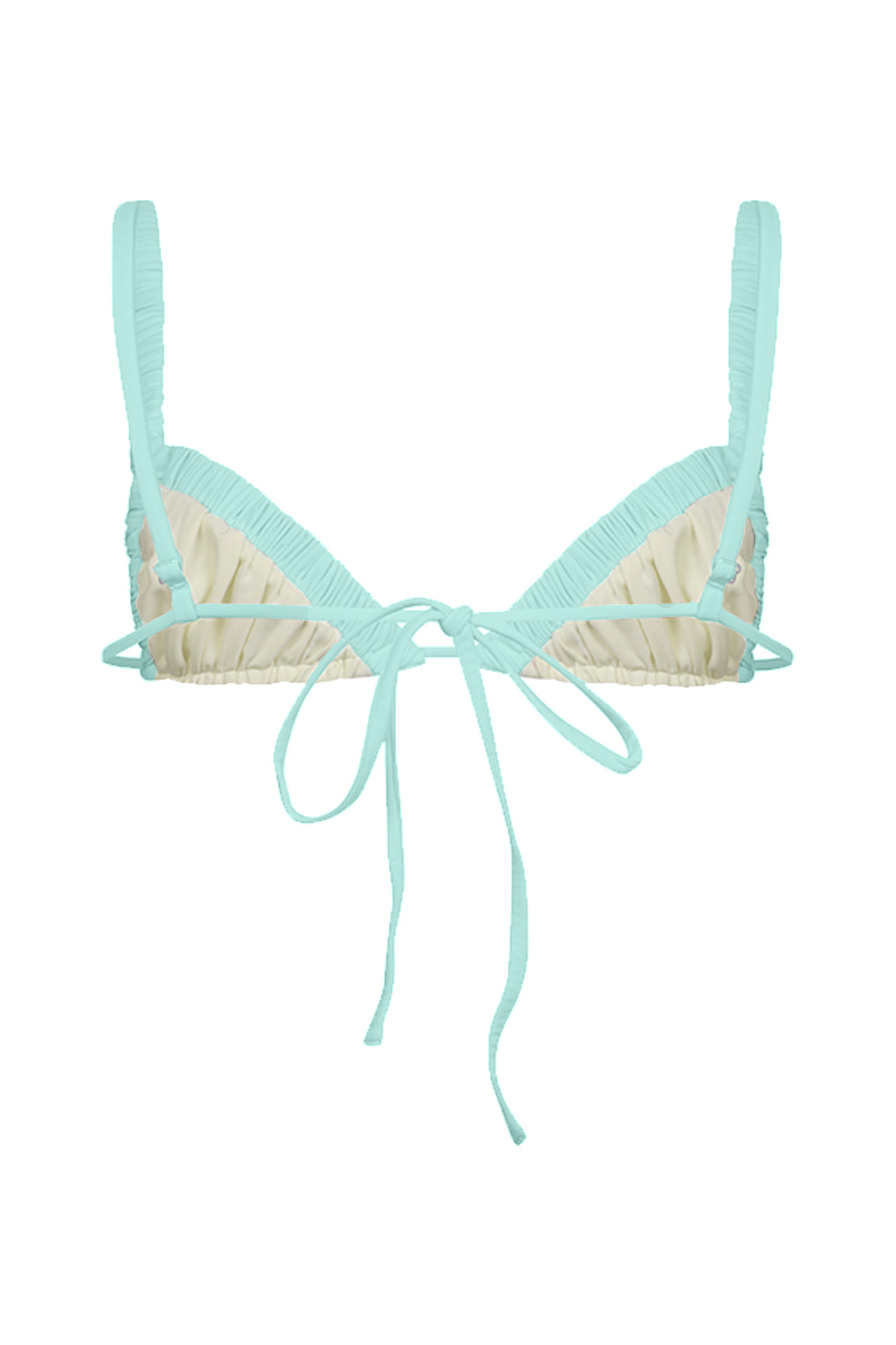 - Características: Copas triangulares ajustables, tejido fruncido, tirantes finos ajustables