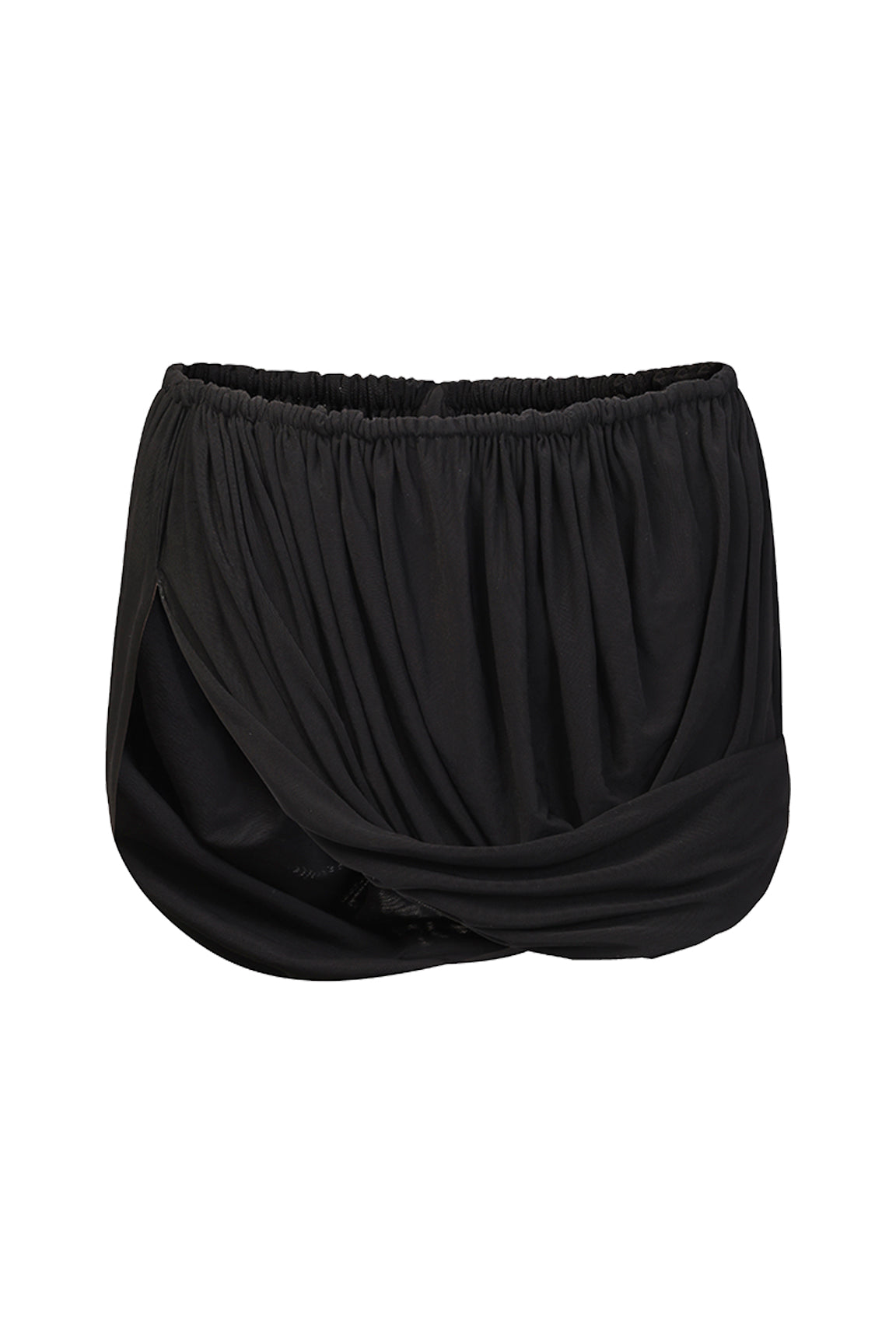 La falda Bellezza en color Silky Black es la quintaesencia de la elegancia sin esfuerzo: una falda ligera diseñada para acompañarte en cada momento, del sol a la playa. Confeccionada en nuestro característico satén, se ajusta delicadamente a la cintura y cae suavemente sobre las caderas, ofreciendo la cobertura justa para dejar entrever la piel bronceada.