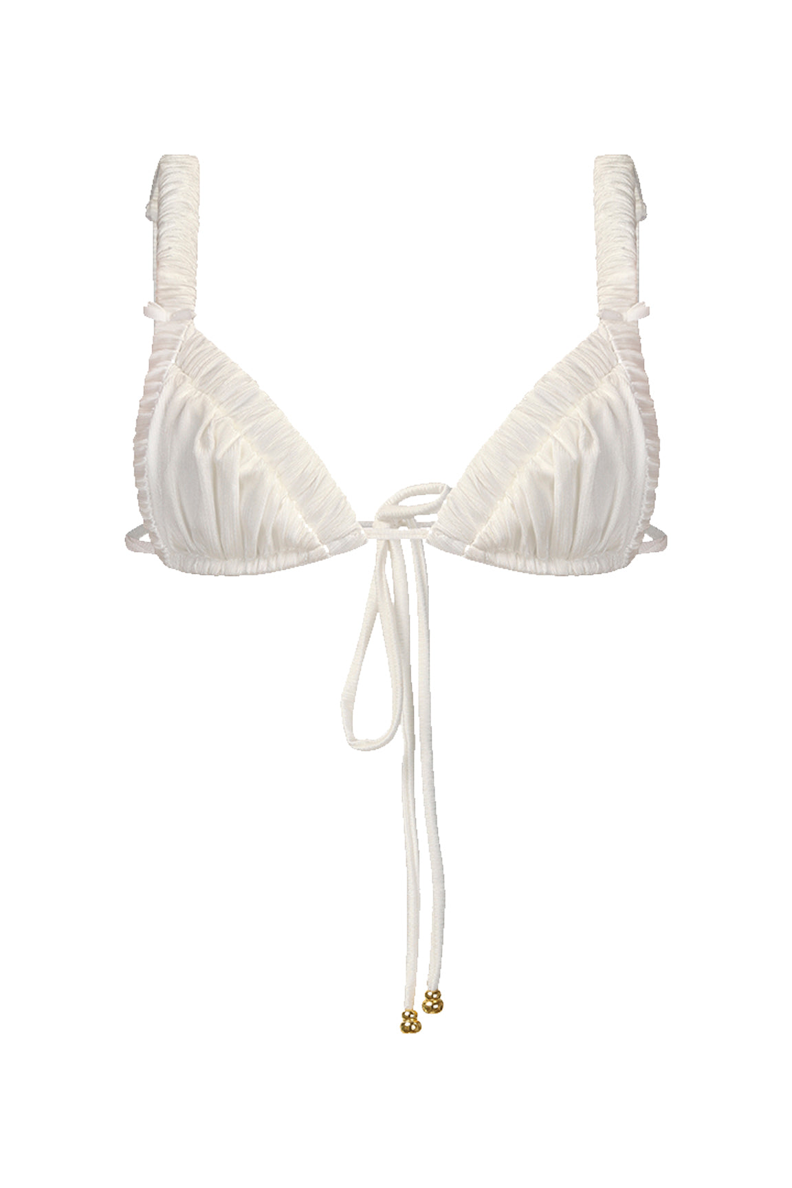- Características: Copas triangulares ajustables, tejido fruncido, tirantes finos ajustables