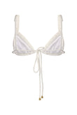 El top de bikini Ada está enmarcado por suaves volantes y cuenta con una tira trasera ajustable que permite personalizar el ajuste. Diseñado para una sujeción ligera y mínima, se recomienda usar una talla más. Para una sujeción más firme, ajusta la tira trasera para mayor comodidad y confianza. Cuanto más alta la ajustes, más seguro se mantendrá el top en su lugar.
