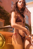 Clásico diseño tribal negro y rojo, pieza original divino seas 100% bordada a mano, perfecta para broncearse, corte brasilero.