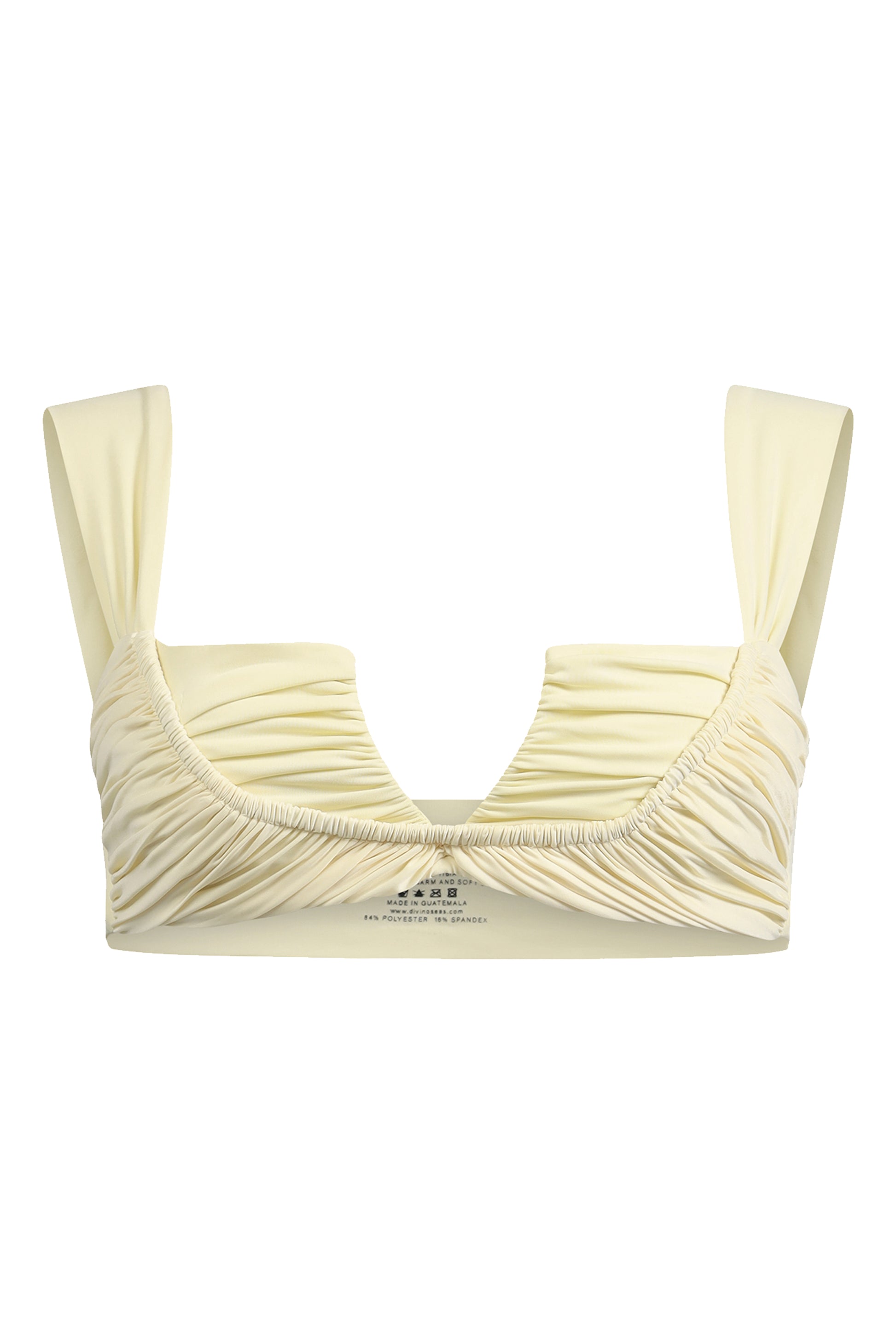 El top Eclat en butter yellow es una declaración de sofisticación discreta que equilibra la elegancia minimalista con un ajuste favorecedor y estructurado. Diseñado para adaptarse al cuerpo con precisión, irradia un refinamiento sin esfuerzo en cada detalle. El tono amarillo suave captura la esencia dorada del verano, lo que lo convierte en un básico perfecto de la moda de baño.