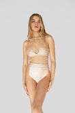 Confeccionado con las mejores combinaciones de algodón, lycra y poliéster del mercado, este extraordinario conjunto de trajes de baño acentúa la cintura con un perfil alto clásico que recuerda a la moda de la década de 1940. Nombrado en honor a la primera dama más famosa de Estados Unidos, la honorable candidata noble Eleanor Roosevelt, quien condenó de manera polémica las dictaduras fascistas en un momento políticamente inoportuno. Este artículo Legacy Line de textura única también va en contra del espíritu de la época mientras abraza la verdad a través de la positividad corporal a través de la comodidad y calidad. ELEANOR está disponible en negro, tostado, marfil, azul pacífico y rosa intenso. También disponible en lycra de seda flexible fina color rubor.