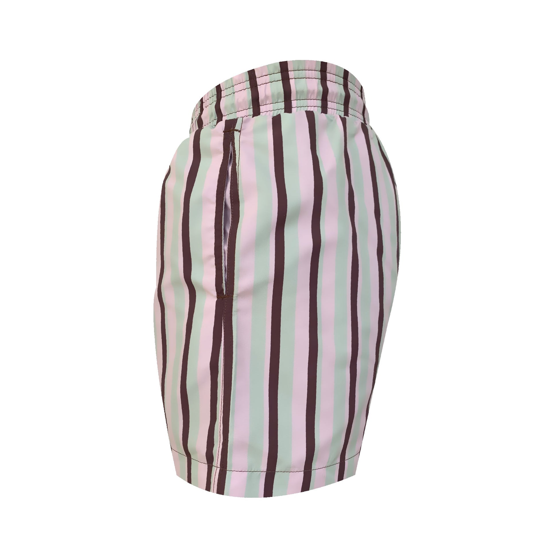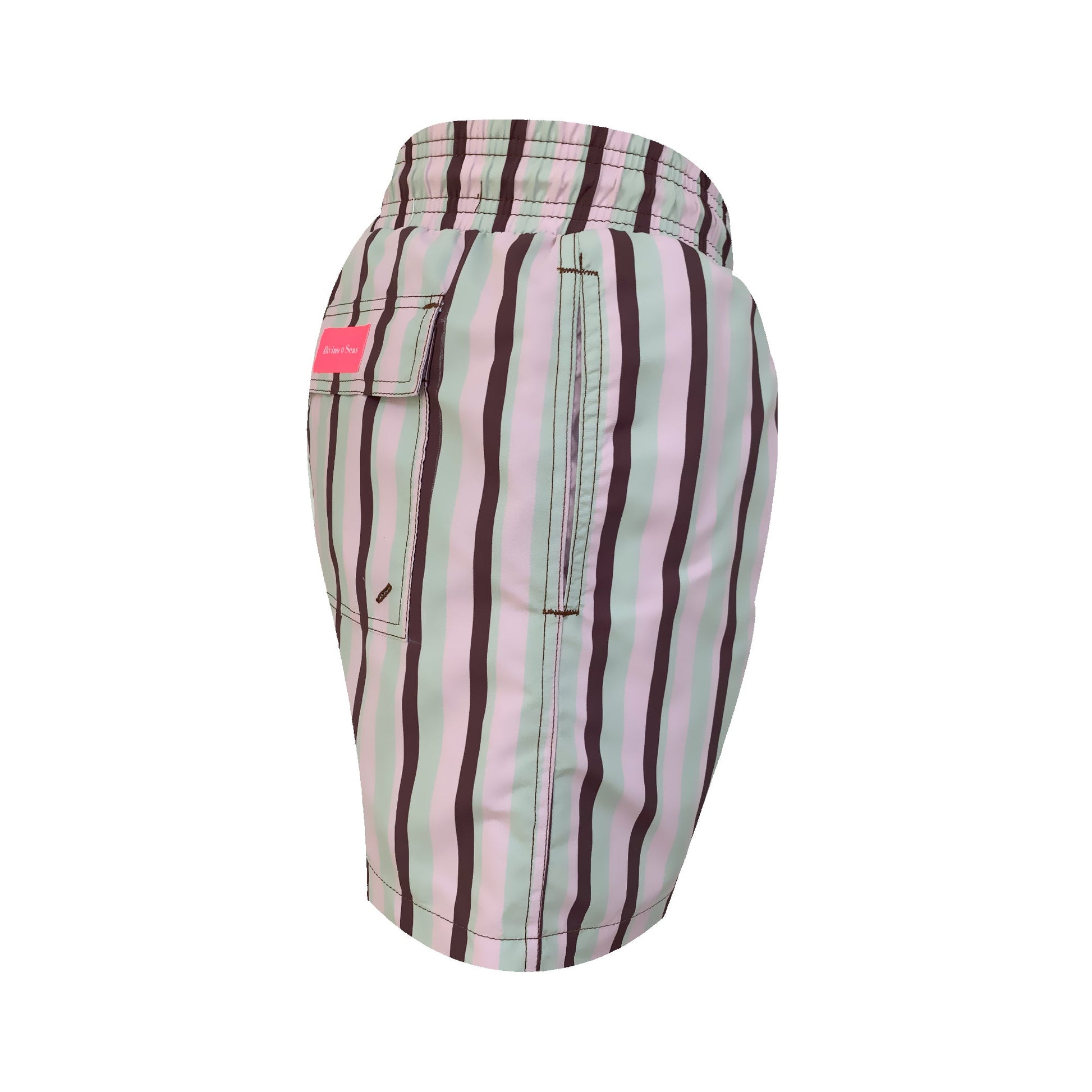 Bañador de hombre con estampado original divino seas de rayas azul verdoso y rosa palo con tejido de secado rápido, 100% poliamida con cinturilla elástica.