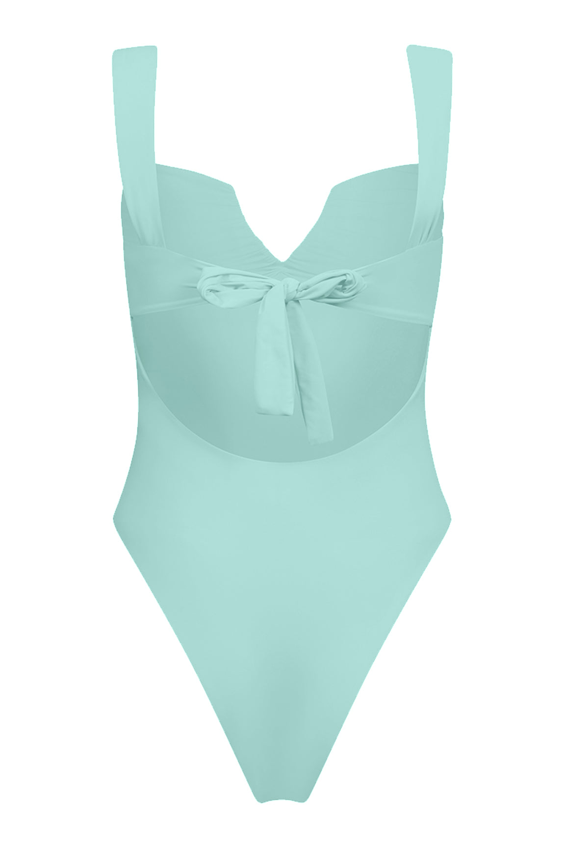 Nuestro bañador de una pieza más vendido, el Natala en azul Aruba, redefine el clásico traje de baño con su silueta escultural. Un corpiño de seda fruncido, combinado con un escote corazón delicadamente definido, ofrece elegancia y sujeción, mientras que la seda blanca perlada capta la luz con un brillo sutil. Perfecto para disfrutar de días de piscina y noches de resort.