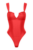 Una declaración de fuerza. El bañador entero Natala en rojo combina su fruncido central con una silueta que esculpe y da soporte. El tono carmesí se enciende bajo el sol, encarnando la esencia de una feminidad audaz.